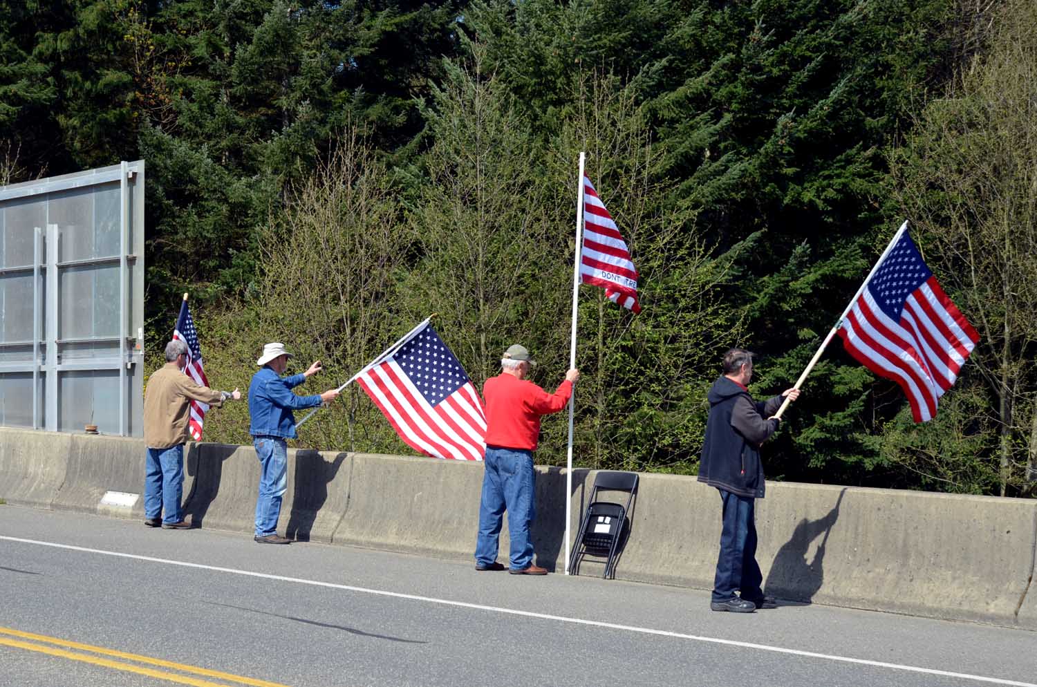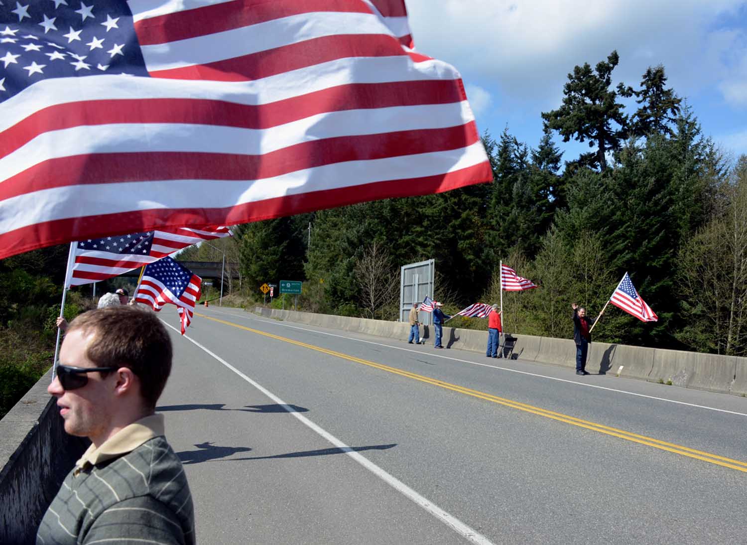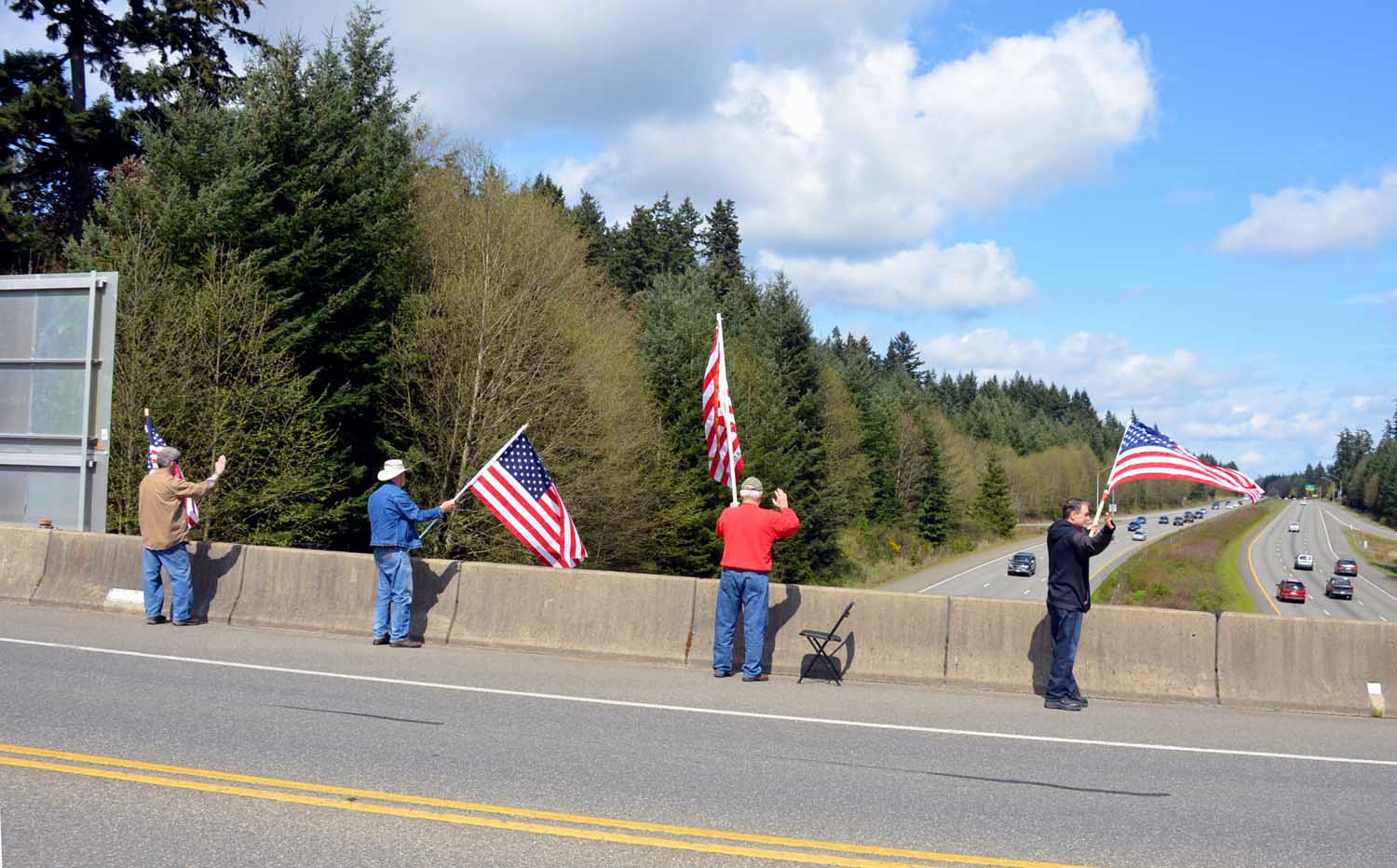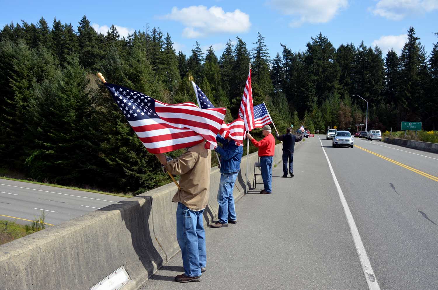 Join us the first Saturday of each month at the Trigger Avenue Overpass of Naval Base Kitsap – Bangor from 12:00pm – 2:00pm. Stay tuned for two special events: Mother’s Day flagwaving at Bangor and The Unforgotten Run!