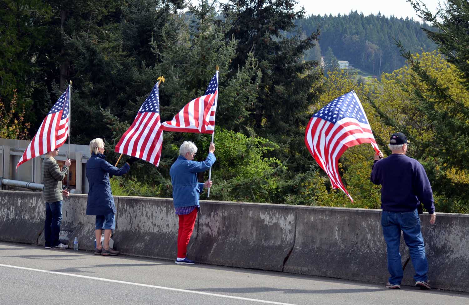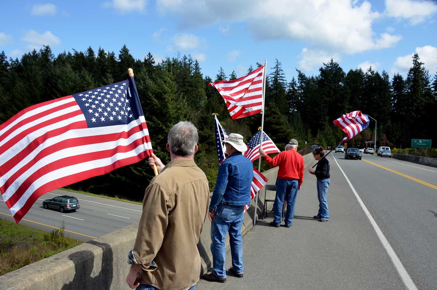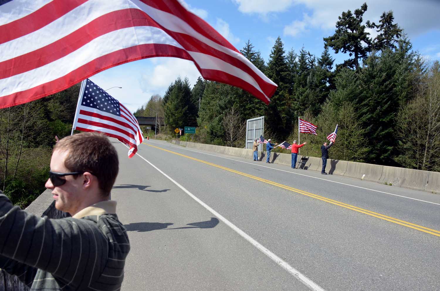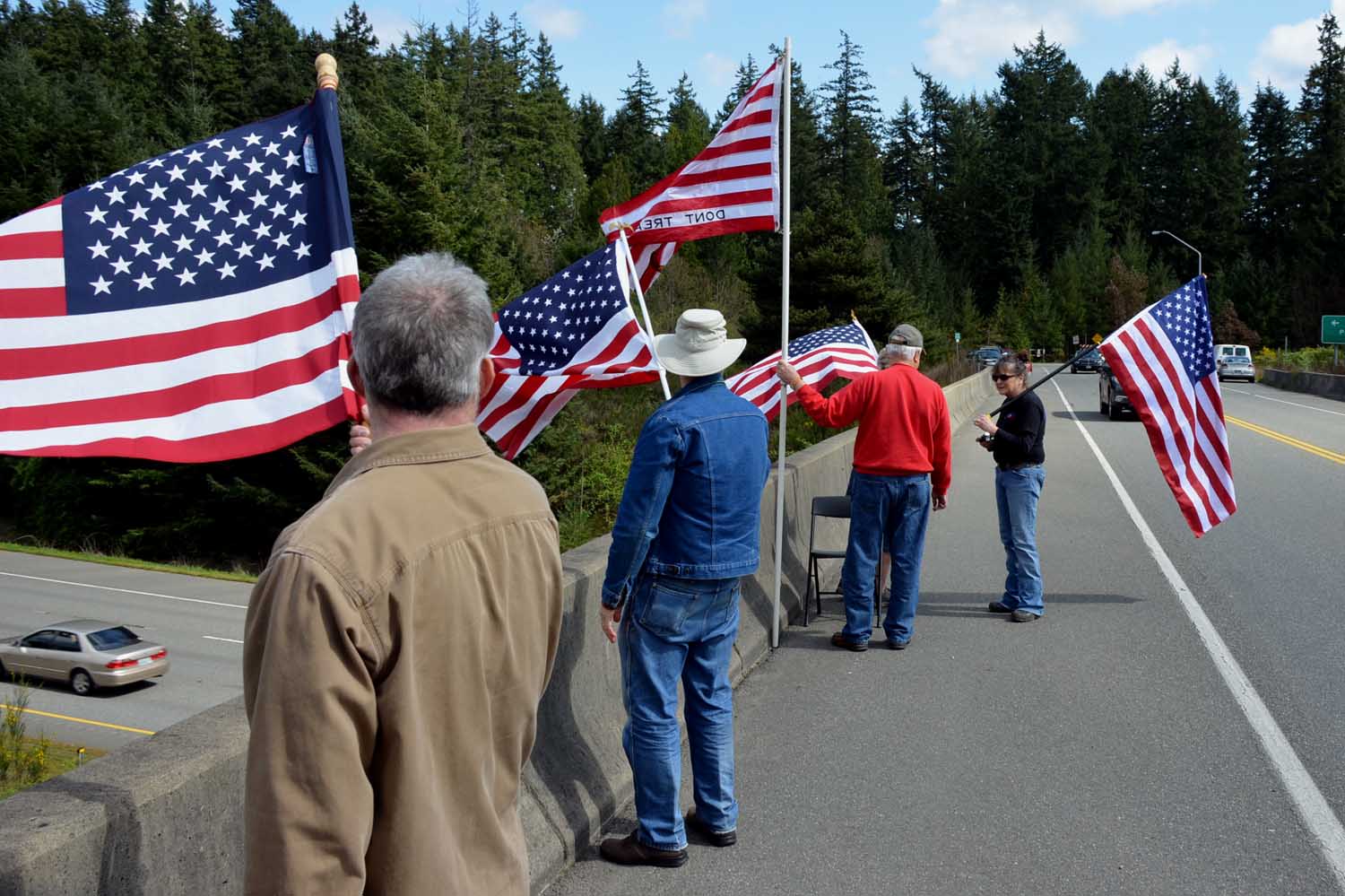 Join us the first Saturday of each month at the Trigger Avenue Overpass of Naval Base Kitsap – Bangor from 12:00pm – 2:00pm. Stay tuned for two special events: Mother’s Day flagwaving at Bangor and The Unforgotten Run!