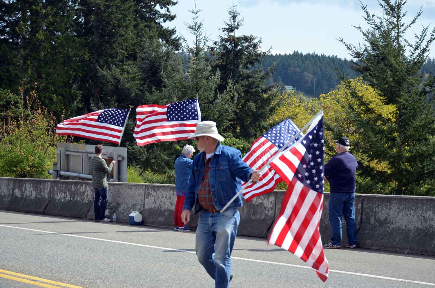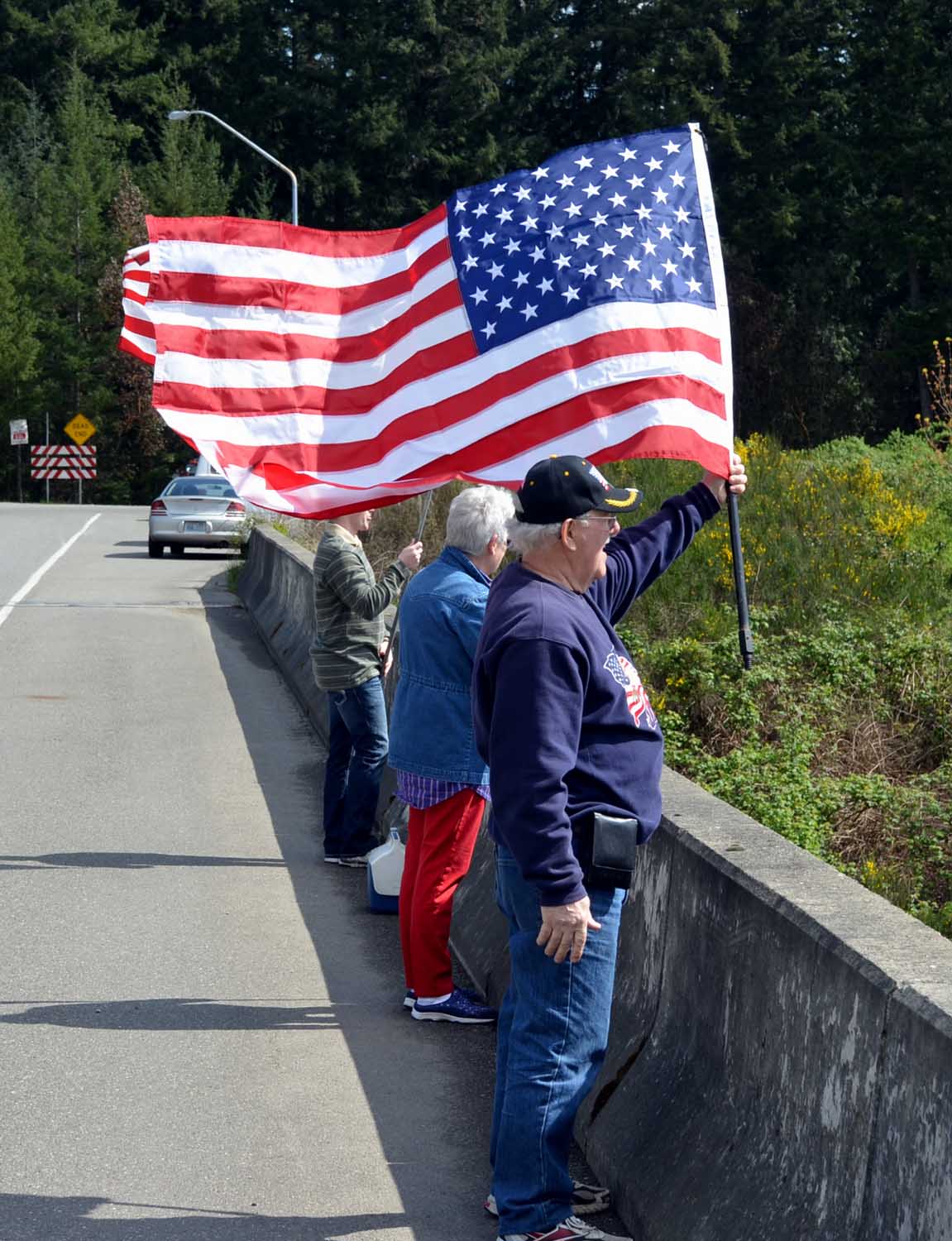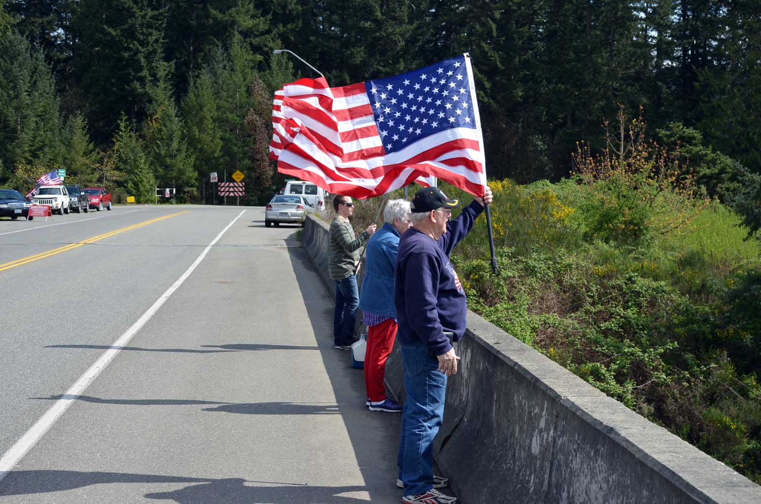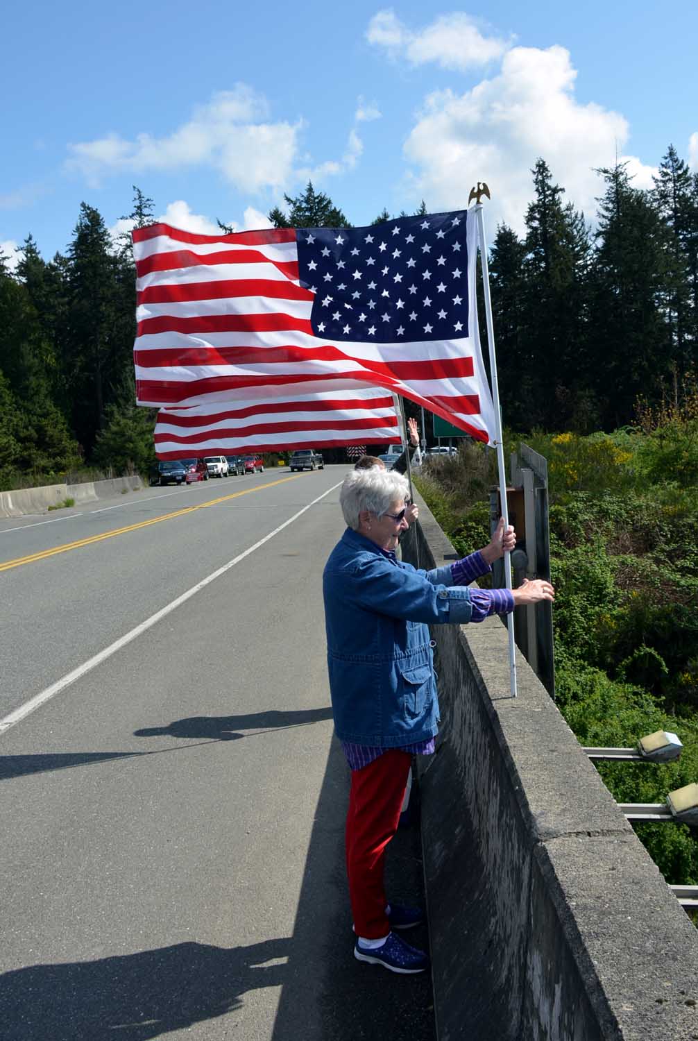 Join us the first Saturday of each month at the Trigger Avenue Overpass of Naval Base Kitsap – Bangor from 12:00pm – 2:00pm. Stay tuned for two special events: Mother’s Day flagwaving at Bangor and The Unforgotten Run!