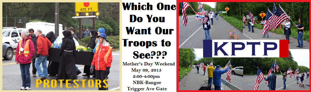 The anti-nuke protestors are back at Naval Base Kitsap – Bangor for Mother’s Day weekend. The group “Ground Zero” is known for unorthodox protests and demonstrations at Bangor. On Martin Luther King, Jr. Day of this year, they held a mock funeral in front of our soldiers and their families as they drove through the Main Gate. In the face of growing nuclear threats around the world (e.g. Iran and the associated flawed treaty), it is not time to disarm our capabilities. Furthermore, this is not what our troops want to see on Mother’s Day!