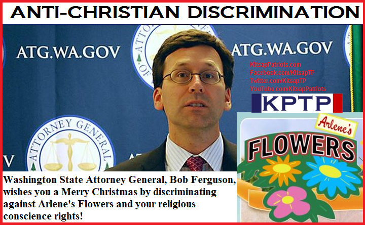 Ho Ho Ho! Just before Christmas, Washington State Attorney General, Bob Ferguson, issued a brief supporting the judiciary’s discrimination against Arlene’s Flowers and your religious conscience rights! A magnificent slap in the face to Christians right before Christmas, Mr. Ferguson.