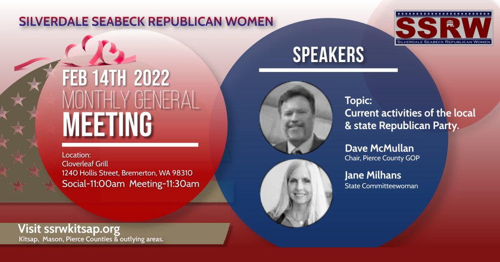 Elizabeth Kreiselmaier is running to represent the 6th District of WA in the U.S. Congress. Paige Jarquin is running for State House Position 2 and Janell Hulst is running for Position 1. This is your opportunity to get to know them and get involved in helping us take back the House. Now more than ever, we need candidates ready to stop those who will defund the police and make our streets less safe, who will fight the avarice of the ruling class and their desire to take our income, and who will fight for parent’s rights to control their child’s education